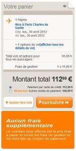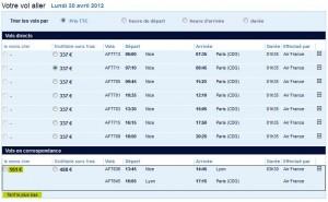 Nous commencerons par le vol en aller simple du lundi matin entre Nice et Paris Charles de Gaulle. Dans l’exemple suivant le vol de 9 h 00 easyJet avec un bagage de 20kg max est à 112.99 euros. Le vol le plus proche chez Air France est le Nice – Paris de 7 h 10 qui lui est à 337 euros. Il y a aussi celui de 9 h 45 au même prix. Précisons que les vols Air France proposés sont tous modifiables sans frais, chez easyJet l’option annulation est à 6.10 euros.