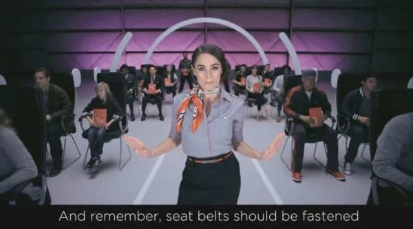 Virgin America a lancé une vidéo pour les consignes de sécurité qui est devenu un hit sur ​​YouTube avec maintenant plus de 6.5 millions de pages vues. Cette vidéo toute en musique qui fait passer le bouclage de ceinture comme un acte amusant.