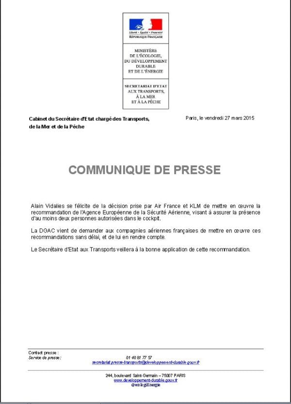 Le communiqué de presse est tombé hier, il faudra être 2 dans le cockpit et ce tout le temps. Si un des pilotes doit quitter son poste une hôtesse de l’air devra être présente au poste jusqu’au retour du pilote.