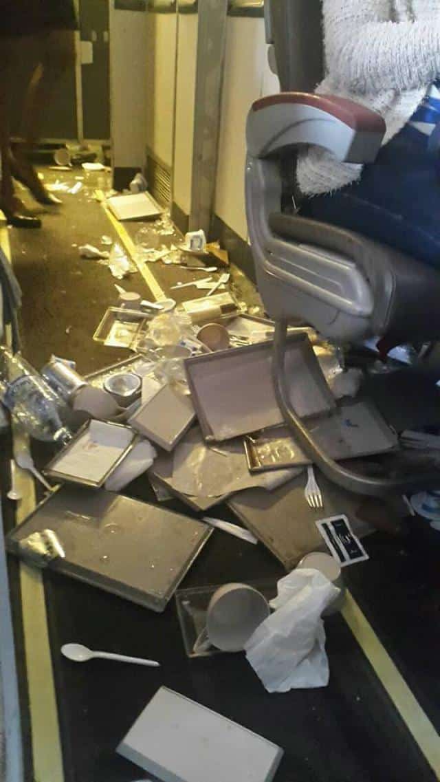 La querelle serait, selon certains témoins, une histoire de formation accordée à l’une et pas à l’autre. Quand on voit l’état de l’appareil on imagine aisément que ce différent a pris des proportions disproportionnées. On comprend que certains passagers se soient plaint des hôtesses de ce vol !