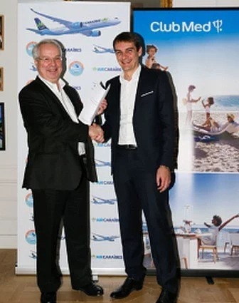 Marc Rochet, Président du Directoire d’Air Caraïbes et Sylvain Rabuel, Directeur Général France, Europe-Afrique du Club Med, ont signé ce jour un partenariat pour une durée de 2 ans. A compter du 10 novembre 2016, Air Caraïbes transportera les clients du Club Med grâce à une nouvelle liaison reliant Paris-Orly Sud à San Salvador aux Bahamas.