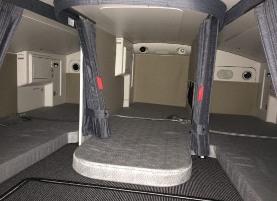 Après le service il y a le crew-rest, celui-ci aussi est dans la continuité de l’ensemble et devrait permettre aux équipages French blue d’être en pleine forme pour le service du petit déjeuner.