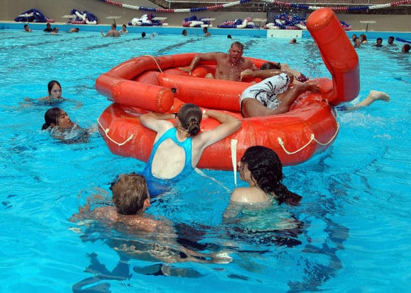 - L’ancre flottante est à jeter à la mer dès regroupement des canots.