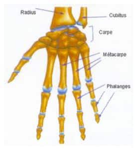 • Doigts : 1 phalanges / 2 me-phalangines / 3 phalangettes