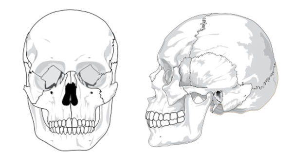 La face est constituée de 14 os, 13 fixes et un articulé (maxillaire inférieur).